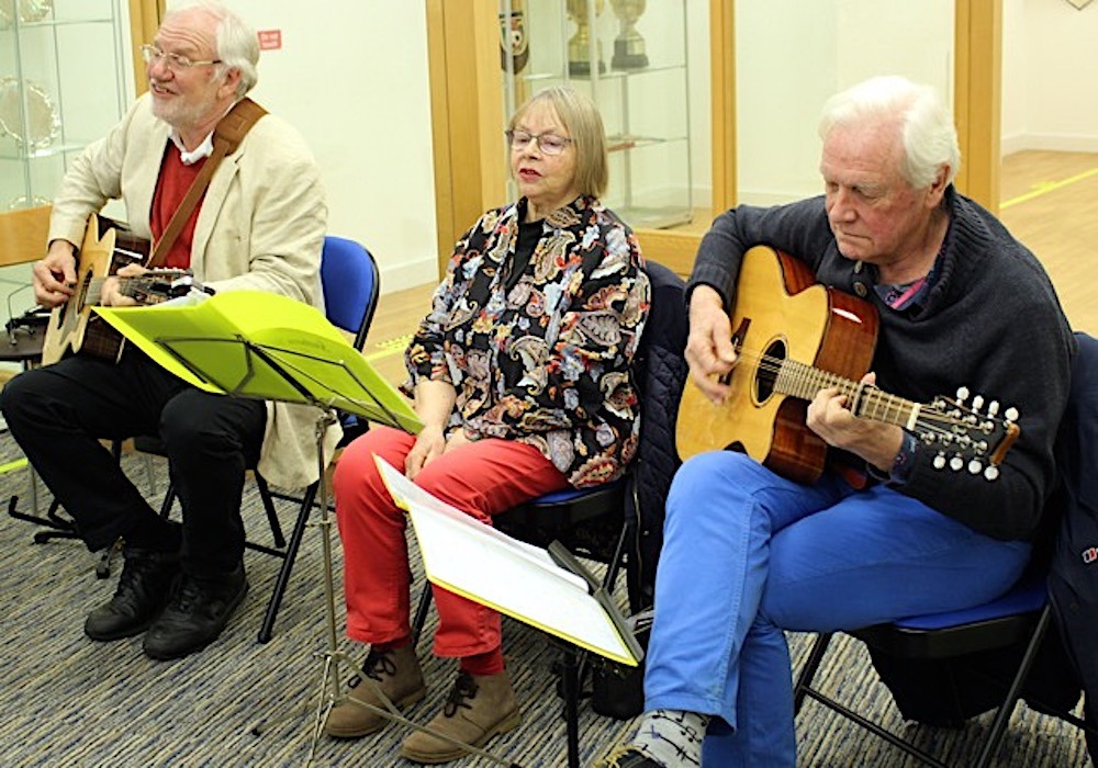 Just a few words from a song written by Kentish folk stalwart Bob Kenward who performed it with John and Di Cullen at the MMF’s second annual folk concert in the Museum Friends’ Shop on April 6.